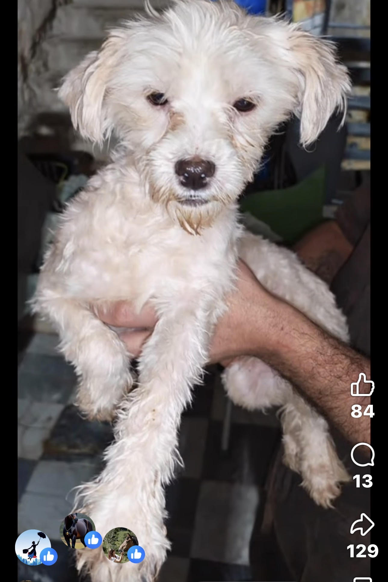 Petit prince, âgé de 4 à 5 ans, pesant de 3 à 5 kg, un petit maltais qui lui aussi a été retrouvé dans les rues dans les décombres d’un immeuble insalubre, on l’a retrouvé caché sous un tas de débris, il tremblait de tout son corps, les odeurs lui avaient imprégné son corps. Il était tout sale. Le pauvre, essayant de se nourrir avec les ordures. C’était affreux. C’était un spectacle désolant comme toujours Mira l’a repris, l’a remis au refuge, l’a lave, lui a donné de la nourriture, propre et saine lui a donné de l’eau et il l’a remis au milieu de tant d’autres, il était dans son petit coin apeuré, il ne savait pas jouer et il ne savait pas se mêler à la meute, il était toujours en retrait. Ce pauvre petit amour, ayant été aperçu toujours tout seul, ayant peur de tous ces congénères. Mira n’a pas pu que de le mettre en urgence à l’adoption. Il n’attend que vous il espère être au calme dans une famille au chaud et oublier toutes les contraintes qu’il connus auparavant. Il est prêt à l’adoption, il a eu son test sérologique qui a été effectué en Allemagne. Son titrage a été validé par le ministère de l’agriculture égyptienne. Il est identifié, il a son passeport, il n’attend plus que vous comme toujours c’est toujours le même refrain, et c’est toujours la même chanson que l’on répète malgré que ça n’a pas l’air d’être une chanson c’est plutôt un désespoir c’est plutôt un appel au secours c’est plutôt un SOS C’est vraiment désolant les malheurs qu’il y a là-bas. Ce n’est pas possible.